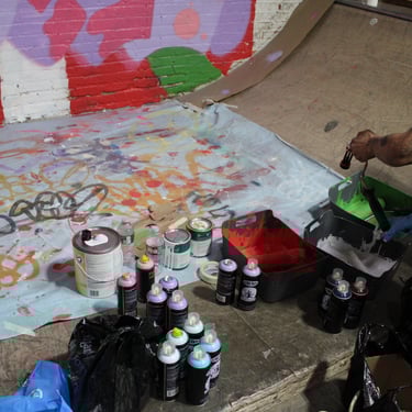 Nosotros, organizamos un evento que combinaba graffiti y skate como lenguajes principales. Invitamos a artistas a intervenir el espacio en directo y reunimos a skaters locales.